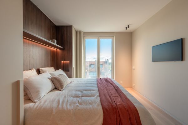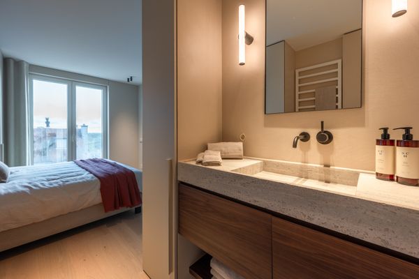 Located on the seventh floor of Residence Milenka, this elegant 105 m² apartment with a 15 m² terrace offers a haven of calm and refinement in the heart of the Zoute, where architecture, light, and the sea converge beautifully.