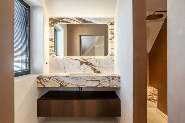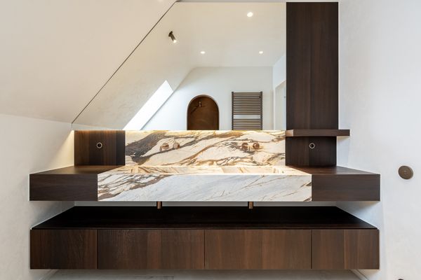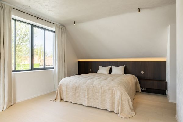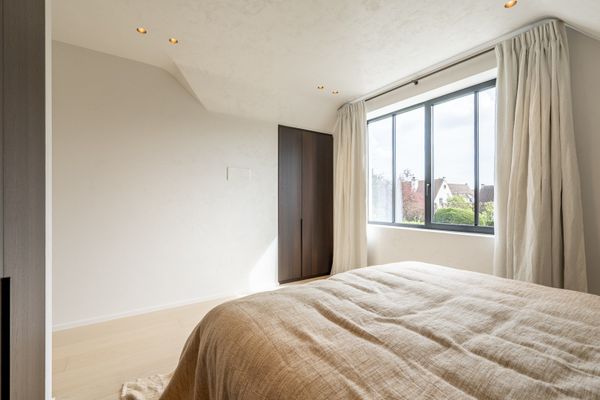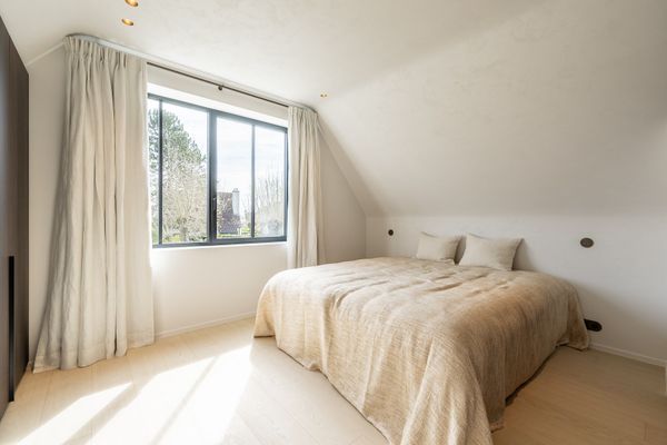 Een personenlift verbindt de verdiepingen vlot met elkaar. Op de bovenverdieping vindt u vier ruime slaapkamers, elk voorzien van ingemaakte kasten. Twee slaapkamers beschikken over een eigen luxe badkamer, de twee overige slaapkamers delen een gemeenschappelijke douchekamer. Een zolderruimte biedt extra bergruimte.