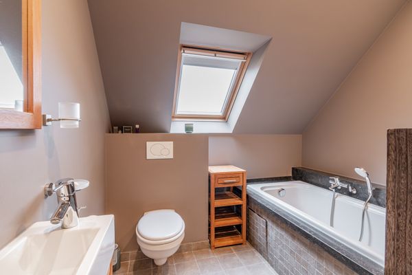 Rez-de-chaussée : hall d’entrée avec armoires encastrées et toilettes invités. L’espace de vie lumineux comprend un salon, une salle à manger et une cuisine élégante avec îlot central et une grande baie vitrée donnant sur le jardin et la terrasse couverte. Il y a également un grand débarras séparé. Un havre de paix proche de la ville !