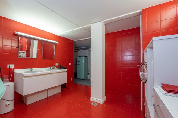 Le niveau inférieur (-1) bénéficie d’un accès supplémentaire via un ascenseur (vélos) et propose une vaste pièce polyvalente pouvant servir de salle TV, chambre supplémentaire, salle de loisirs ou espace détente (avec ventilation supplémentaire). Buanderie fonctionnelle avec double lavabo et toilette, double douche, grand local à vélos et local technique.